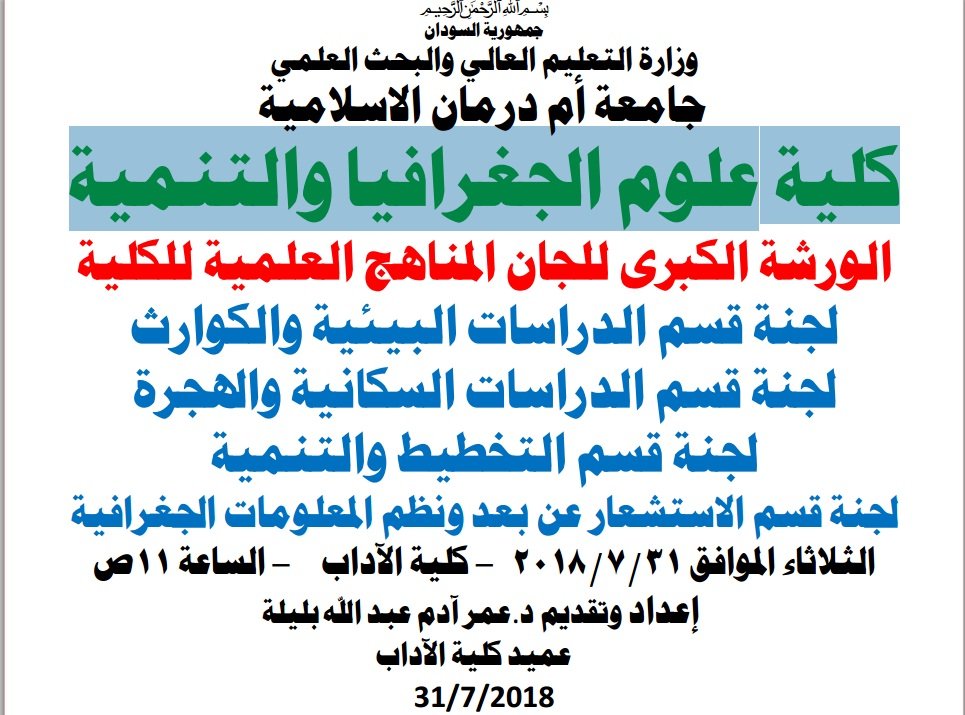كلية علوم الجغرافيا والتنمية في جامعة ام رمدان الاسلامية